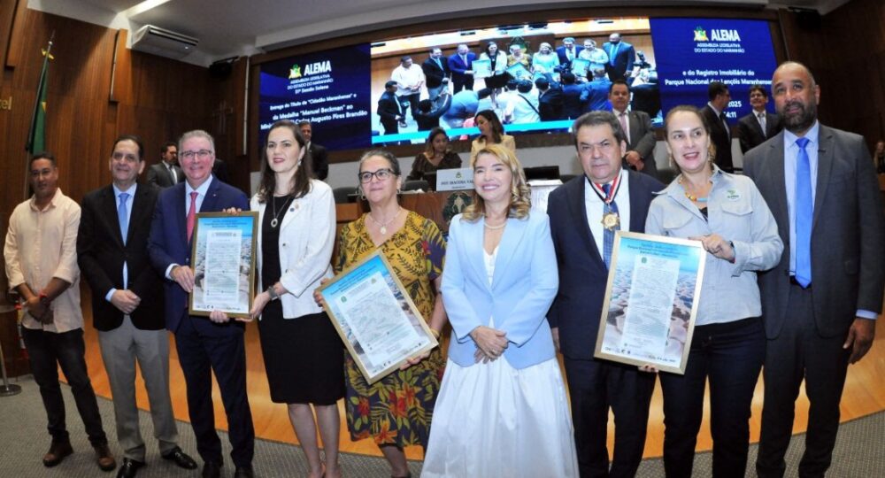 O Tribunal de Justiça do Maranhão e a Assembleia Legislativa do Estado promoveram, nesta sexta-feira (10/10), a entrega do registro imobiliário do Parque Nacional dos Lençóis Maranhenses, em nome da União, em evento conjunto com a concessão do título de Cidadão Maranhense e da Medalha do Mérito Legislativo Manuel Beckman ao ministro Carlos Pires Brandão, do Superior Tribunal de Justiça (STJ), natural de Teresina, no Piauí. A solenidade foi realizada no Plenário do Poder Legislativo estadual.