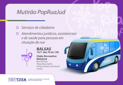Mutirão do TJMA, Prefeitura e órgãos parceiros oferecerá serviços jurídicos, de saúde e de assistência a pessoas em situação de rua, ...Maranhão recebe evento federal voltado à modernização e capacitação de gestores públicos