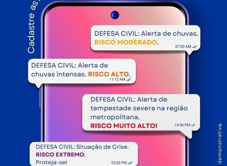 O serviço de alerta informa, com antecedência, sobre situações de risco como chuvas intensas, tempestades, deslizamentos e outros eventos extremos. As mensagens são classificadas conforme o nível de perigo, podendo ser de risco moderado, alto, muito alto ou extremo, permitindo ações de autoproteção pela população.
