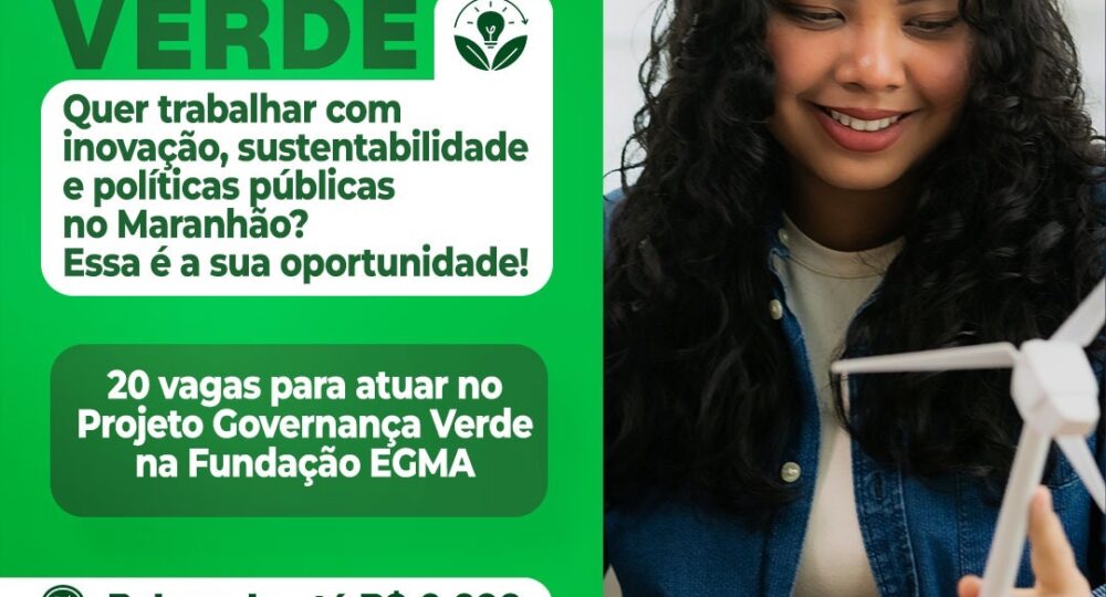 Com o objetivo de fortalecer práticas sustentáveis e inovadoras na administração pública, o Governo do Maranhão, por meio da Fundação Escola de Governo do Maranhão (Egma), lança edital para seleção de bolsistas que atuarão no projeto Governança Verde, Inovação e Sustentabilidade Pública no Maranhão. As inscrições são gratuitas e poderão ser realizadas de 10 a 20 de março, exclusivamente pela internet, no site da Egma.