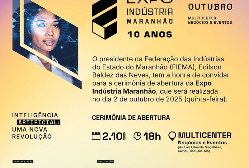 Para o secretário da Seinc, Júnior Marreca, a participação na Expo Indústria está alinhada com o compromisso da gestão estadual em apoiar quem investe, gera emprego e movimenta a economia maranhense. Esta edição do Expo Indústria possui a Inteligência Artificial como tema, contribuindo para que empresários e outros profissionais participem da transformação que está redefinindo o futuro da indústria.