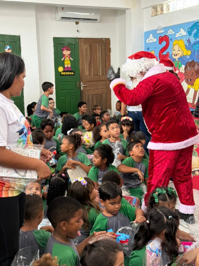 O ponto alto do encontro foi a chegada do Papai Noel, recebido com entusiasmo pelos pequenos. Além dos brinquedos distribuídos, as crianças participaram de brincadeiras, atividades lúdicas e compartilharam um lanche especial preparado para a ocasião.