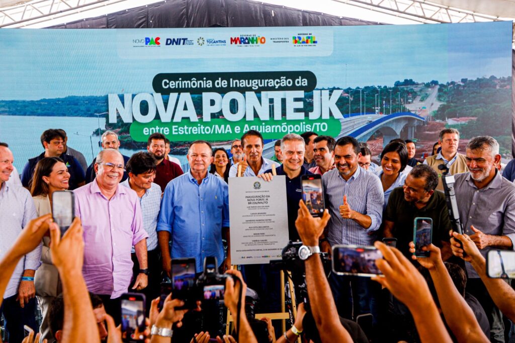 O Governo do Maranhão uniu esforços com o Governo Federal para, em apenas um ano, inaugurar a nova Ponte Juscelino Kubitschek de Oliveira, sobre o Rio Tocantins. A entrega aconteceu nesta segunda-feira (22), restabelecendo o tráfego da BR-226, que é essencial para a mobilidade, a economia e a integração regional. O governador do Maranhão, Carlos Brandão, participou da cerimônia ao lado do ministro dos Transportes, Renan Filho, e do governador do Tocantins, Wanderlei Barbosa.