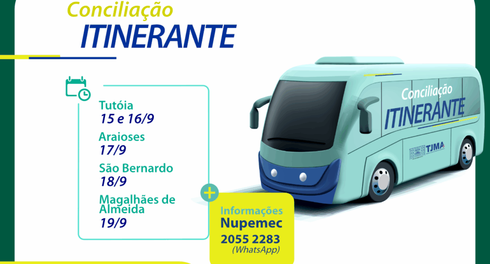 O projeto Conciliação Itinerante do Tribunal de Justiça do Maranhão (TJMA) vai atender as cidades de Tutóia (15 e 16/9), Araioses (17/9), São Bernardo (18/9) e Magalhães de Almeida (19/9). No período, cidadãos e cidadãs poderão solucionar conflitos de forma amigável, por meio do diálogo e da conciliação.