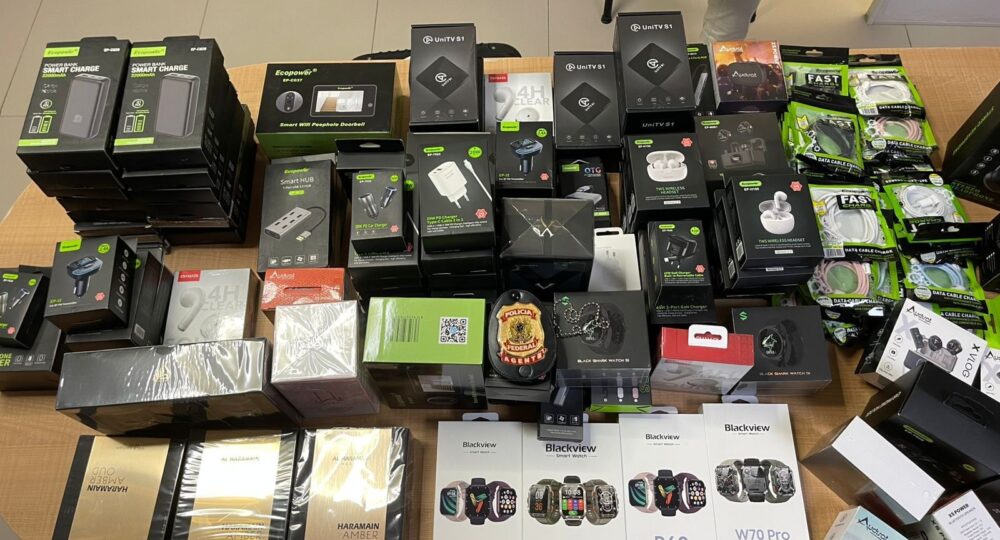 Durante a inspeção, foram encontrados frascos de substâncias, como Tirzepatida, Retatrutida e peptídeos, popularmente conhecidas como canetas emagrecedoras, todas sem autorização sanitária de importação. Também foram identificados eletrônicos sem comprovação fiscal, incluindo smartwatches, câmeras eletrônicas, aparelhos de IPTV, HDs externos e fones de ouvido, além de perfumes importados.
