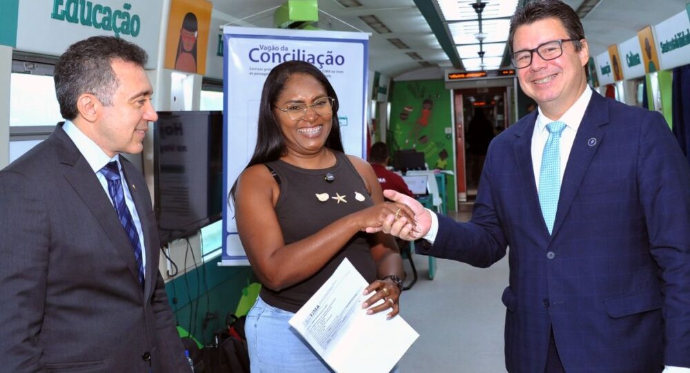 Uma hora. Este foi o tempo estimado que a professora Leonildes de Cássia Assis de Sousa precisou para conseguir o divórcio do ex-companheiro, Antônio José de Sousa, e, na sequência, oficializar a união estável com o atual, Herbete Oliveira, na primeira viagem do Vagão da Conciliação em 2026, a nona desde que o serviço foi implantado. O projeto do Núcleo Permanente de Métodos Consensuais de Solução de Conflitos do Tribunal de Justiça do Maranhão (Nupemec/TJMA) realizou 114 atendimentos, com 100% de acordos nas 20 audiências realizadas, nos dias 9 e 10 de fevereiro.