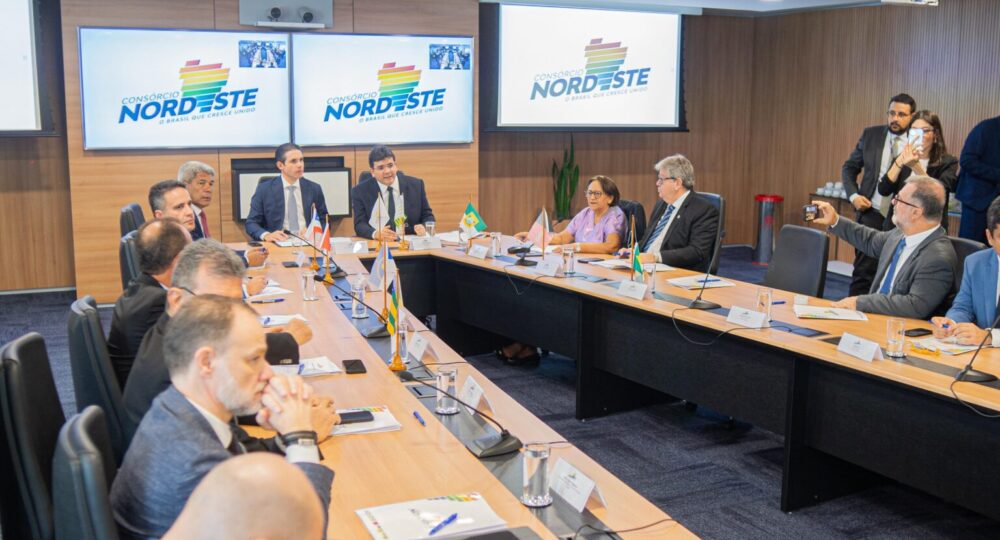 Os governadores discutiram ainda uma proposta de missão conjunta para o Oriente Médio e a participação dos estados em diversos eventos de destaque, como a COP 30. ”Tratamos de uma missão internacional dos governadores no Oriente Médio, especialmente na Arábia Saudita, Emirados Árabes e Catar. Tratamos ainda de transição energética, a nossa participação na COP 30, em Belém, tratando do bioma da caatinga e do potencial do Nordeste para a transição energética e reforçando vários eventos que teremos no Nordeste na temática do crédito, aumentando o crédito para as empresas nordestinas a partir de várias instituições de fomento do país”, afirmou.
