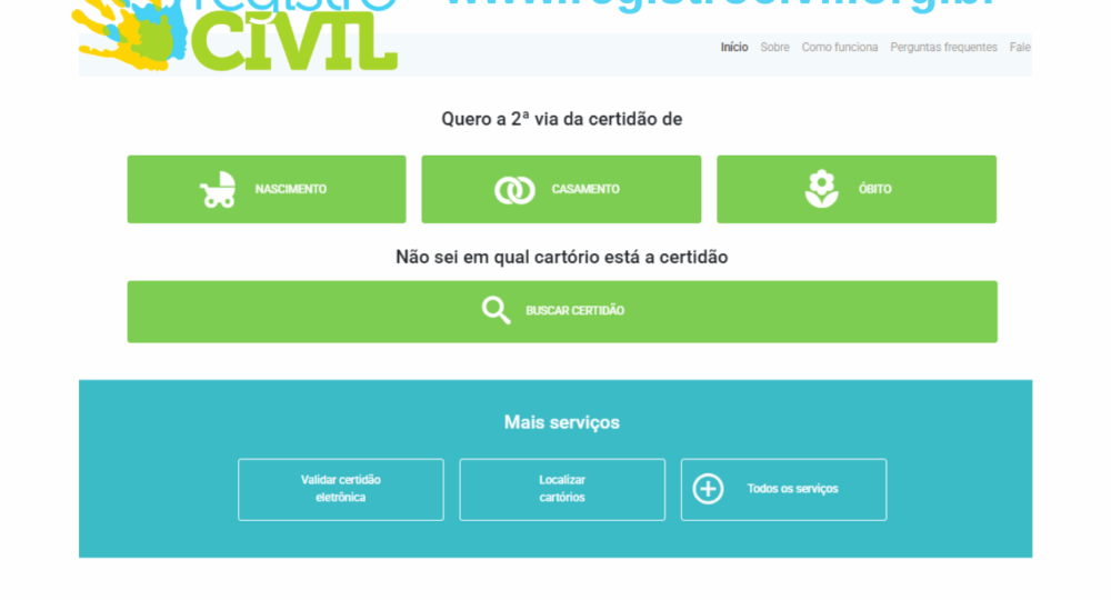 A plataforma www.registrocivil.
