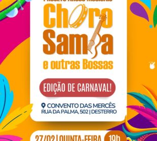 “Choro, Samba e outras Bossas” realiza edição com atrações carnavalescas e diversão para a família