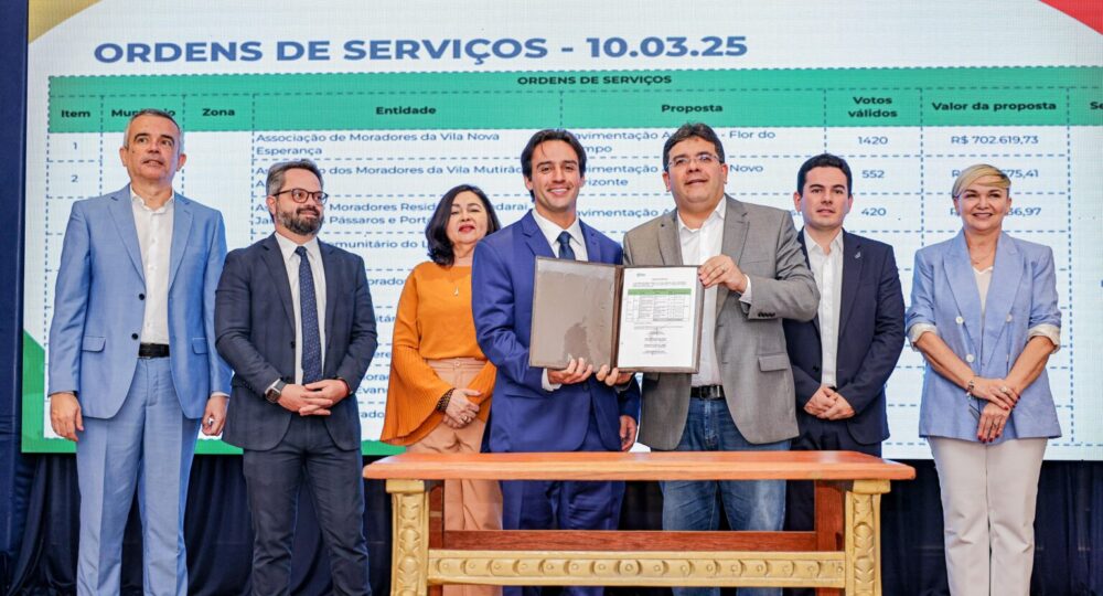 O governador Rafael Fonteles e o secretário da Infraestrutura, Flávio Júnior, assinaram, nessa segunda-feira (10), as Ordens de Serviços para diversas obras de pavimentação asfáltica que serão executadas pela Secretaria da Infraestrutura (Seinfra), com recursos do Orçamento Participativo (OPA).