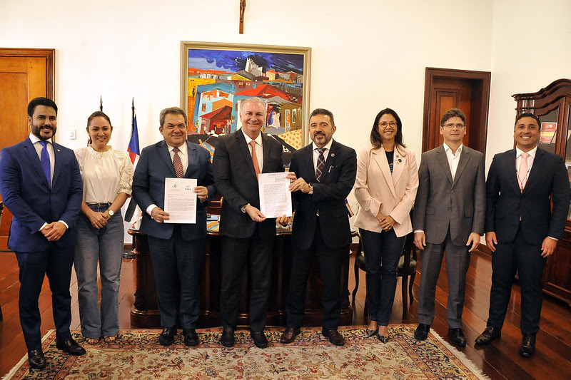 O Acordo de Cooperação foi assinado nesta quarta-feira (29/1), pelo presidente do TJMA, desembargador José de Ribamar Froz Sobrinho; pelo presidente do Nupemec/TJMA, desembargador Nilo Ribeiro Filho; e pelo coordenador-geral do SistCon da Justiça Federal, desembargador federal Carlos Augusto Pires Brandão, com a participação da diretora-geral do TJMA, juíza Ticiany Gedeon Palácio; do juiz assessor de relações institucionais, Douglas da Guia; da coordenadora do Núcleo de Governança Fundiária do TJMA, juíza Arianna Saraiva; e dos juízes federais Hugo Abas Frazão (coordenador do Centro Judiciário de Conciliação,) e George Ribeiro da Silva (diretor do Fórum da Justiça Federal do Maranhão).