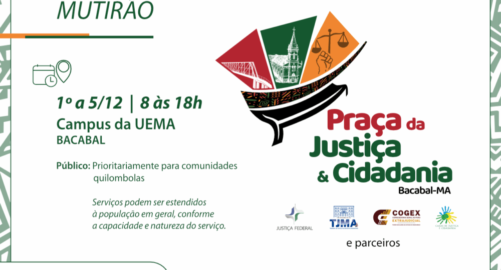 O Tribunal de Justiça do Maranhão, a Corregedoria Geral do Foro Extrajudicial, o Tribunal Regional Federal (TRF – 1ª Região), a Prefeitura de Bacabal e órgãos parceiros oferecerão atividades e serviços gratuitos no município, distante 246 km de São Luís, por meio do programa Praça de Justiça e Cidadania, de 1º a 5 de dezembro, das 8h às 18h.