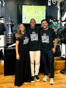 A empresária Márcia Moura, o ex-jogador Donizete Pantera e o empresário Saulo Prazeres (Foto: Cuxá Mídia/Gigante da Colina)
