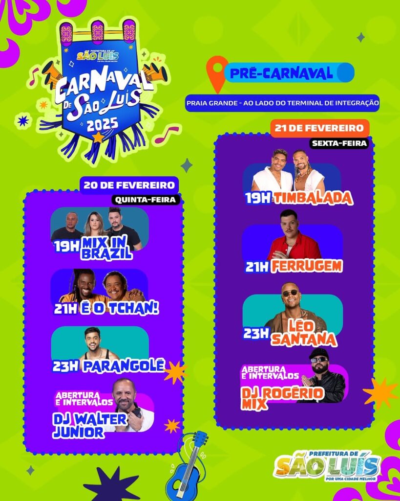 Com uma programação recheada de atrações, o pré-Carnaval encerra sua temporada com chave de ouro, preparando o terreno para a festa oficial. Confira a programação completa e aproveite com responsabilidade!
