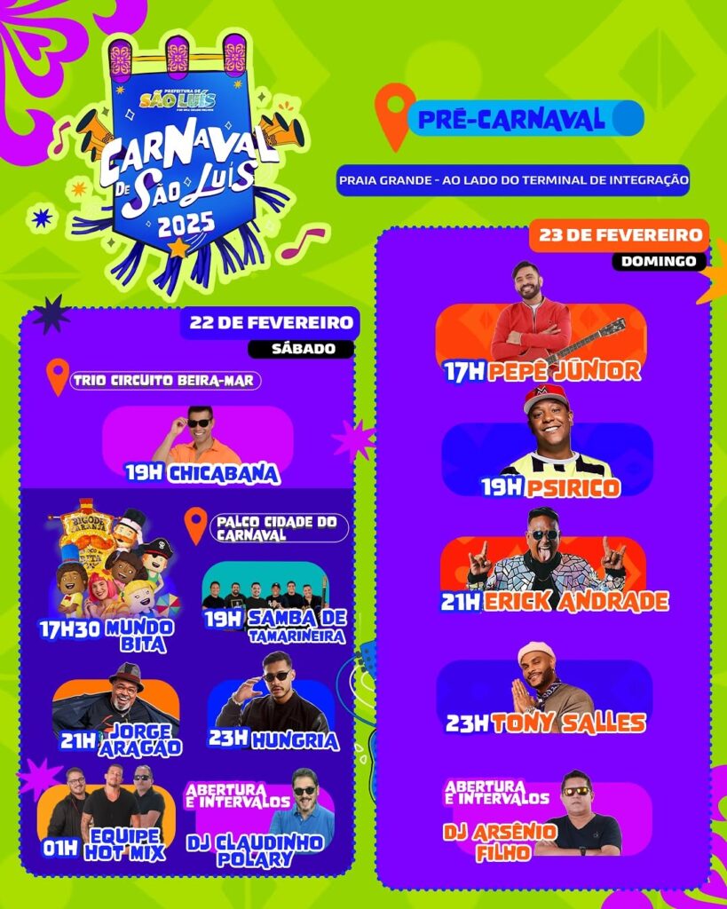 O secretário municipal de Cultura, Maurício Itapary, destacou a importância do evento para a cultura, a economia e o turismo da cidade: “Preparamos um grandioso evento que fortalece nossas tradições e manifestações culturais, movimenta a economia e o turismo de São Luís. Tudo planejado com muita responsabilidade para que a população possa se divertir com tranquilidade e alegria. O Carnaval de São Luís promete ser um dos mais animados e seguros dos últimos anos.”